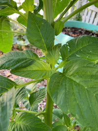 (Amaranthus viridis) [Jamaican variety, via Melissa DeSa in FL.] Tasty, quick-growing, self-sowing hot weather greens popular throughout the African diaspora, as well as in Asian cuisines. The abundant leaves are usually eaten cooked and are sometimes referred to as Chinese spinach. The upright branched plants can reach 6-8 ft. tall in favorable conditions. Cucumber beetles chew some holes in the leaves, but seldom slow down growth.