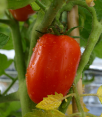 80 days. (Indeterminate) [Italian heirloom, famous for its use in Neapolitan pizza and other Italian dishes.] Long Roma-type tomatoes, 3-4 oz fruits with pointed ends. Thick, dry, low acid flesh contains few seeds. Very productive 6 ft. tall plants have good disease resistance. Excellent canning variety for recipes with sufficient acidity.